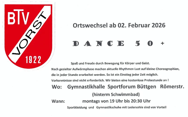 Wir vom TV „Gut Heil“ 1922 Büttgen-Vorst e.V. schätzen die Vielfalt und freuen uns auf Menschen, die „einfach nur Sport“ machen möchten und dabei die Geselligkeit von Gleichgesinnten schätzen.